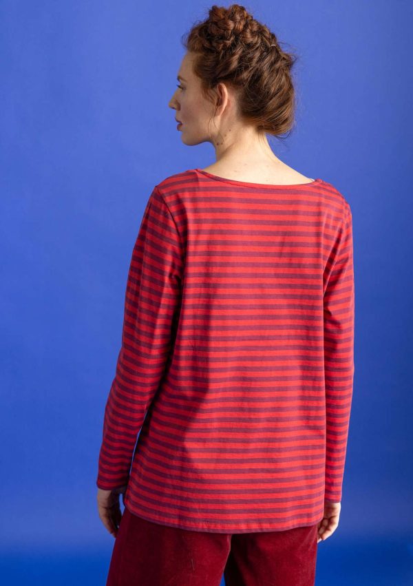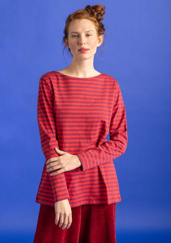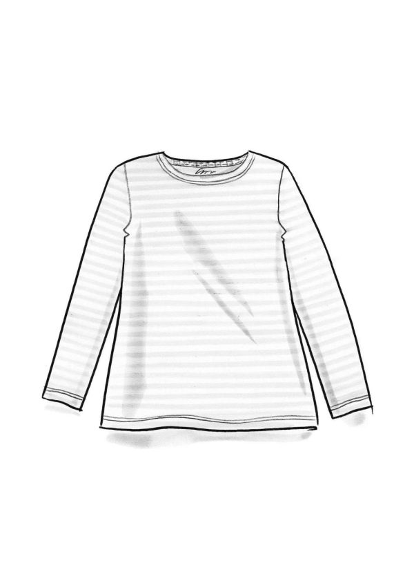 Schlichtes Langarmmodell mit garngefärbten Streifen. Angedeuteter U-Boot-Ausschnitt mit umlaufender Zweinadelnaht.|