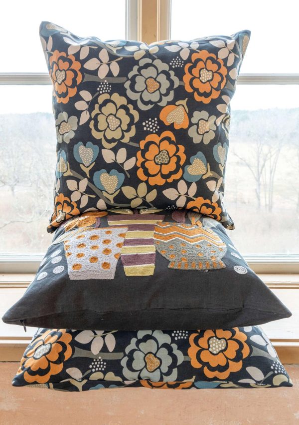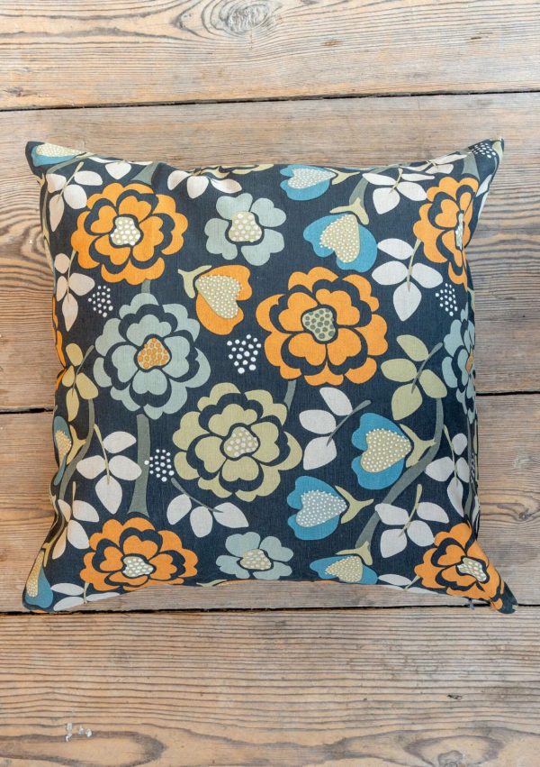 Kissenhülle mit floralem Musterdruck. Vorgewaschenes kräftiges Bio-Baumwollgewebe mit weich patinierter Optik. Verdeckter Reißverschluss unten.|
