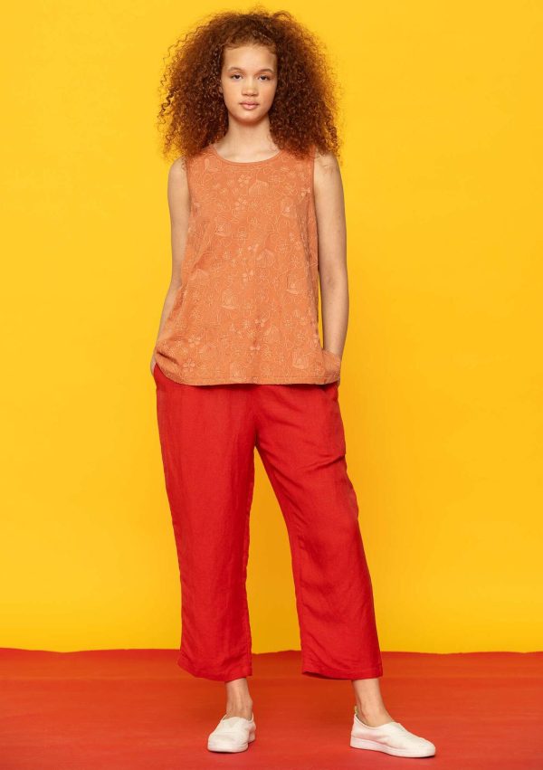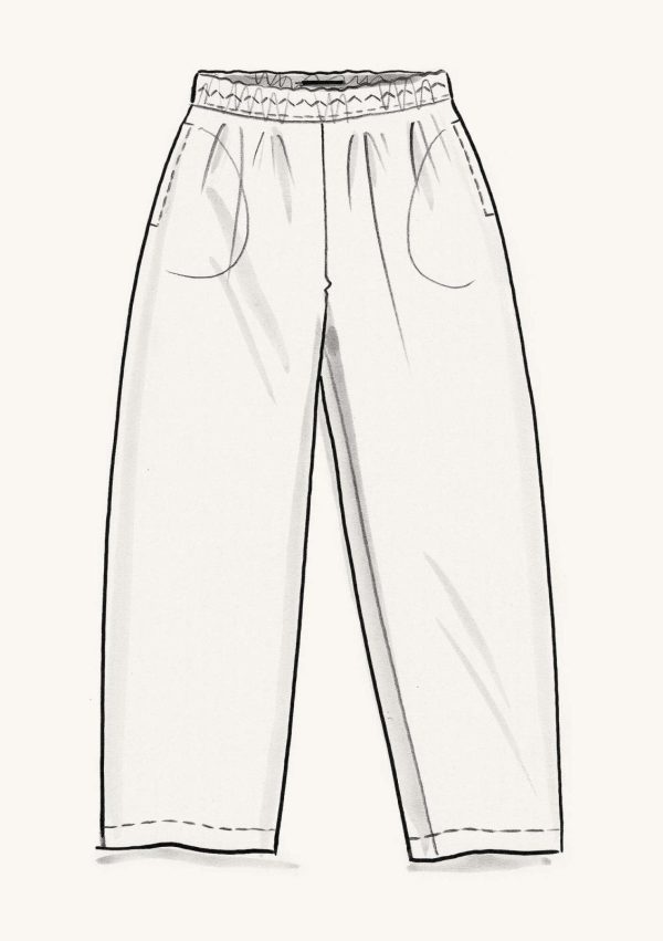 Knöchellange Hose mit innen liegendem Gummizug im Bund und Seitentaschen.|