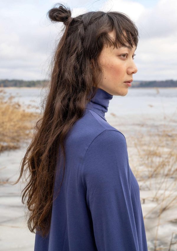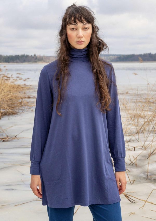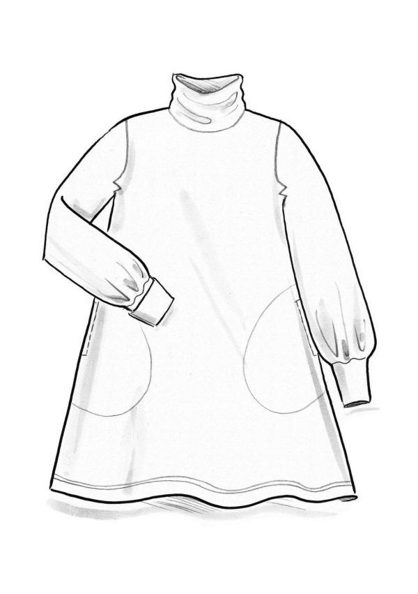 Einfarbige Jerseytunika in A-Linie, mit Rollkragen und Taschen in den Seitennähten. Umschlagbare Ärmelbündchen.|