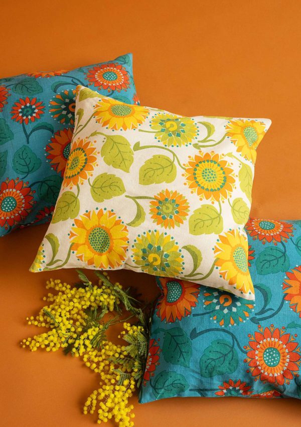 Für ein frisches Interieur: das traumhafte Muster mit Sonnenblumen. Gedruckt auf eine quadratische Kissenhülle mit verdecktem Reißverschluss unten. Leicht strukturierte Qualität aus Leinen/Baumwolle.|