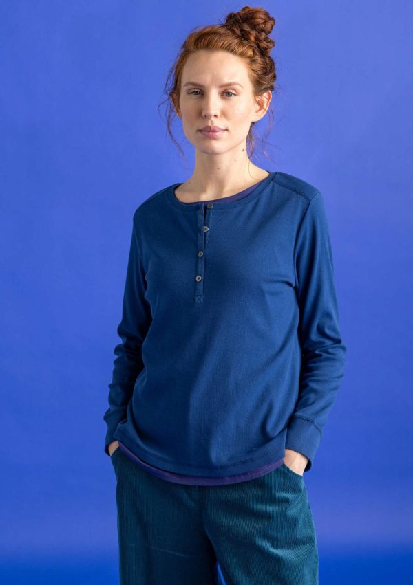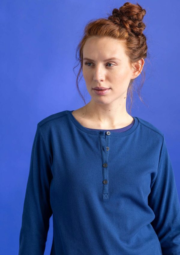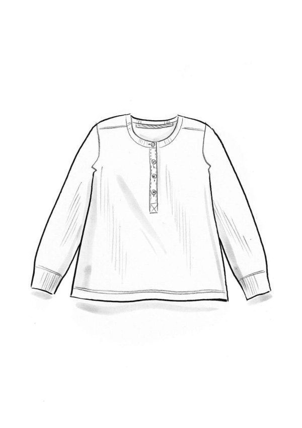 Knopfleistenshirt mit Druckknöpfen vorne. Lange Ärmel mit breiten Bündchen. Schulterpasse und dekorative Flatlocknähte.|