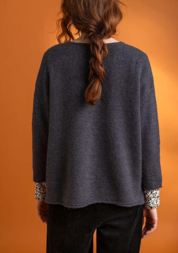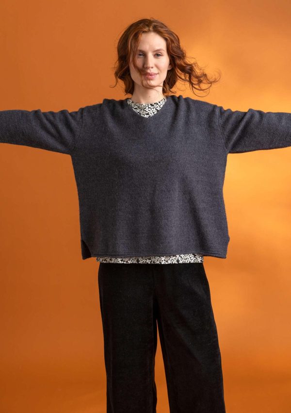 Legerer V-Pullover für behagliche Tage. Aus unserem schönen Melangegarn gestricktes Modell mit kleinen Seitenschlitzen. Feine Rollkanten an Ärmelabschlüssen und Saum.|
