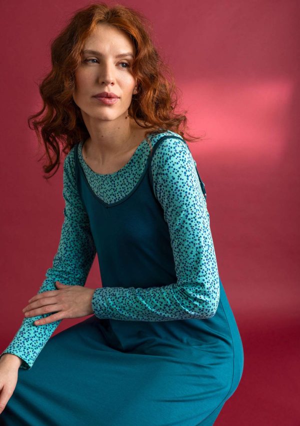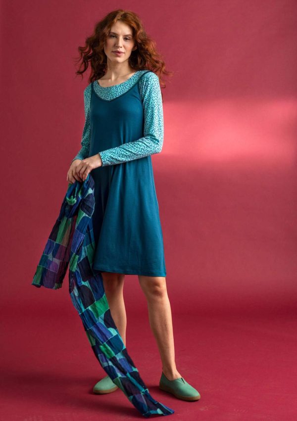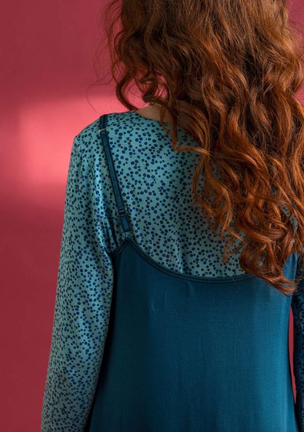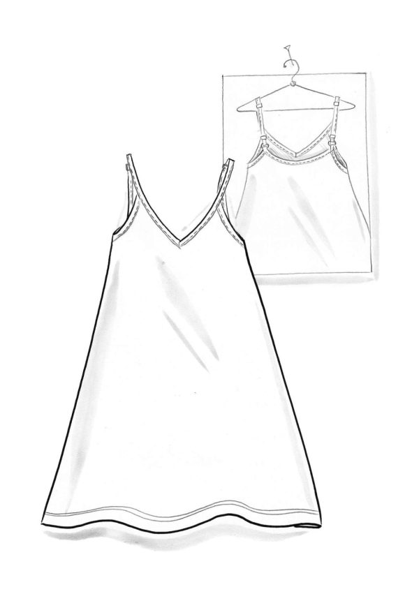 Ärmelloses Kleid aus einer weichen, schmiegsamen Qualität. Hinten leicht abgerundetes Modell mit V-Ausschnitt. Schmale verstellbare Träger. Ideal auch als Unterkleid zu tragen.|